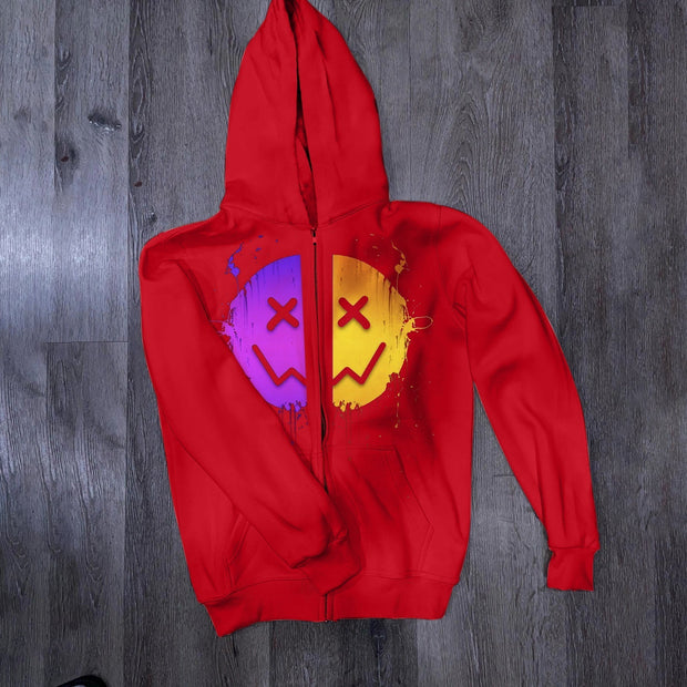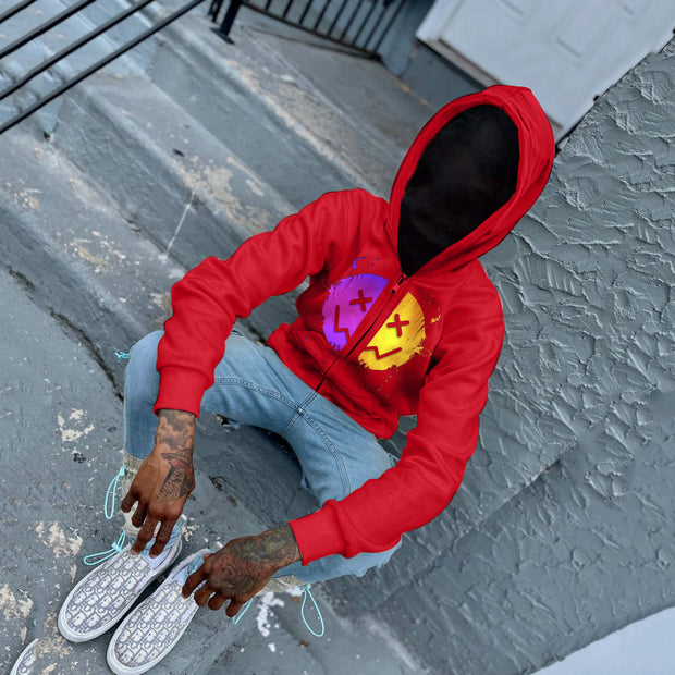 Casual Smiley Print Long Sleeve Cardigan Hoodie