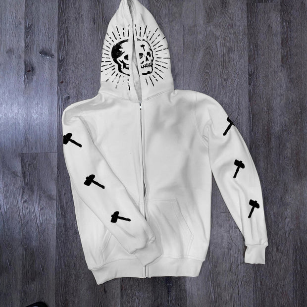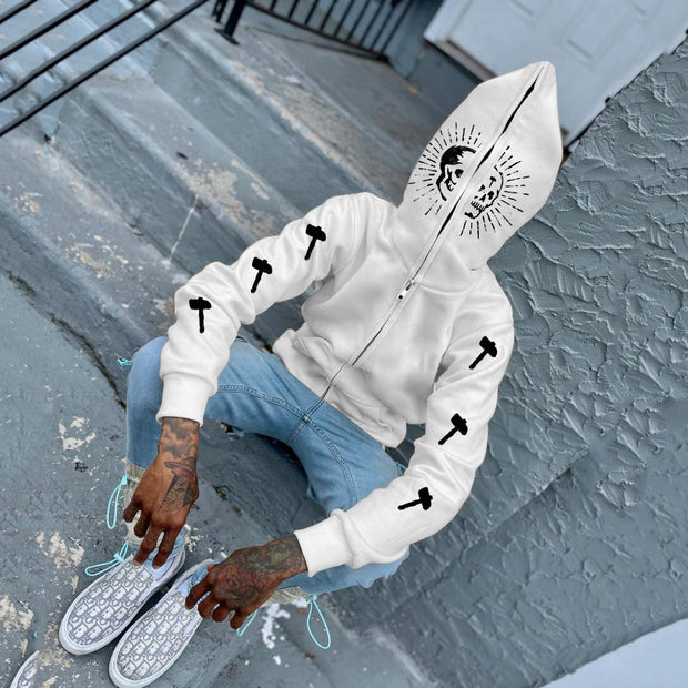Street Style Skull Print Long Sleeve Cardigan Hoodie